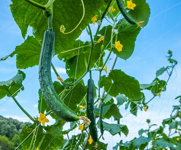 - 「キュウリの収穫はやりがいがあって、たくさん収穫できる。」